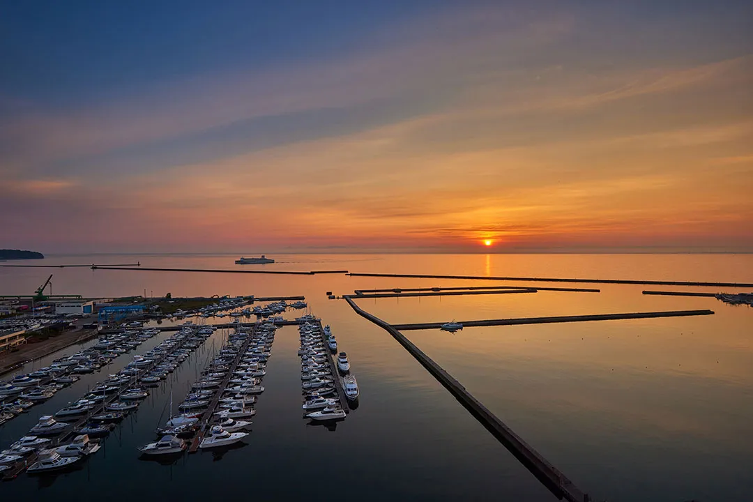 Features: Spectacular views of Otaru Port Marina and Ishikari Bay.