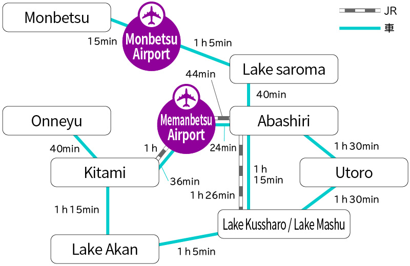 A connecting bus service is available to Kitami and Abashiri. The connecting bus service is available for all scheduled domestic flights.