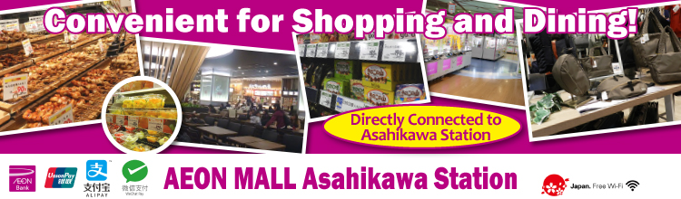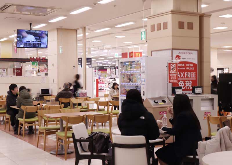 AEON Otaru store, AEON in Otaru, equipped with AEON Bank ATMs, Free Wi-Fi, Eating Area, Bento boxes, Cut fruit, Sunglasses, Bags